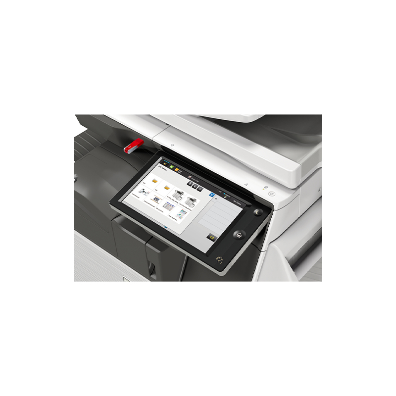 Refurbished Sharp MX-3071 A3 color device is an enhanced solution centric MFP that optimises workgroup productivity anytime, anywhere. Single sign on cloud connectivity, mobile connectivity via WiFi, NFC or QR Code, USB direct printing of MS Office files and OCR for scan to searchable PDF & scan to Office provide flexible workflows. Support for a secondary LAN (optional) provides simultaneous support for two networks, including a combination of wireless and wired networks. The standard Print Release function allows users to send and store documents to a main MFP, which acts as a server. Print jobs can then be released securely at up to five connected network-ready devices. Advanced technological features include a motion sensor that detects approaching users so that the MFP wakes from Sleep mode, ready for immediate operation and communication lamps that show the MFP status. A tiltable 10.1”colour LCD touchscreen provides the option to drag and drop favourite icons for simple customisation of the home page and easy access to a quick-help manual. Everyday operation is simple and intuitive; just touch, tap, pinch and spread or swipe for instant access to every feature, function and setting including advanced preview and web browsing. Print and copy speeds of 30 ppm in colour and black & white and a built-in 150-sheet Duplex Single Pass Feeder with a scan speed of 220 ipm all help to boost efficiency and productivity. There’s even a document feeder LED to remind users to remove original documents, helping to keep documents secure. A maximum paper capacity of 6,300 sheets and wide media range up to SRA3 and 300 gsm enable this device to handle your varied output requirements with ease. A variety of finishing options such as saddle stitching, manual and stapleless stapling add further versatility. Superb 1,200 x 1,200 dpi image quality, plus auto process control and developer refresh system ensure consistently high image quality. A range of robust security features keep your data and network safe including access control, data encryption and S/MIME as well as a self-healing firmware system, SSL certificate validation and a programme execution white list. The MX-3071 uses Sharp's latest energy-saving technology. A rapid warm up time, low power consumption and low TEC value all aim to save money and support your environmental objectives. In addition, the automatic toner cartridge eject function ensures all toner has been consumed, thereby, saving resources.